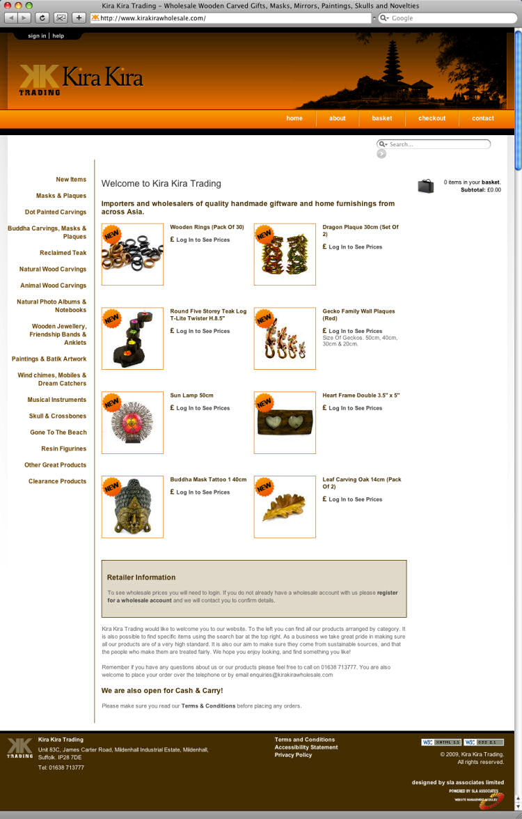 Having traditionally sold via mail order retail channels, the team at Kira Kira were keen to expand on their exposure with a new website. Having met several web design companies who failed to grasp the difference between the wholesale and retail markets we were recommended by an existing client and felt our starter shop system was the perfect solution. Product prices and shopping basket functionality are now only available to registered customers and the new account registration and VAT displays have been tailored to suit the wholesale market at no additional cost.